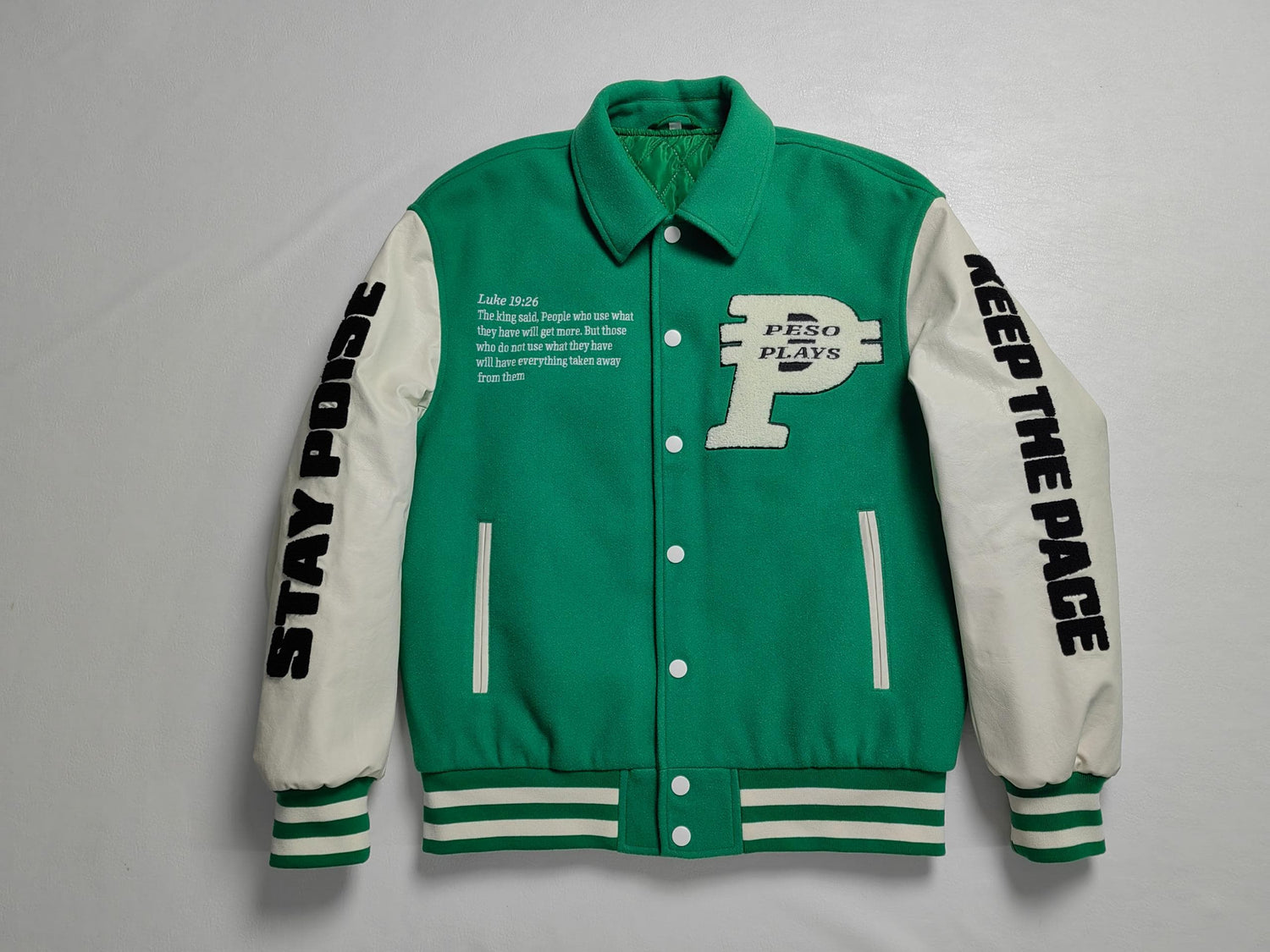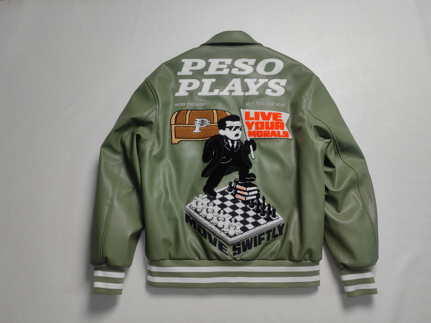 Explore Peso Plays' Stylish Full Leather Letterman Jacket Collection.